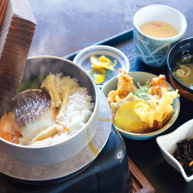 併設レストランの「うみべ季節の釜めし御膳」¥2,000。