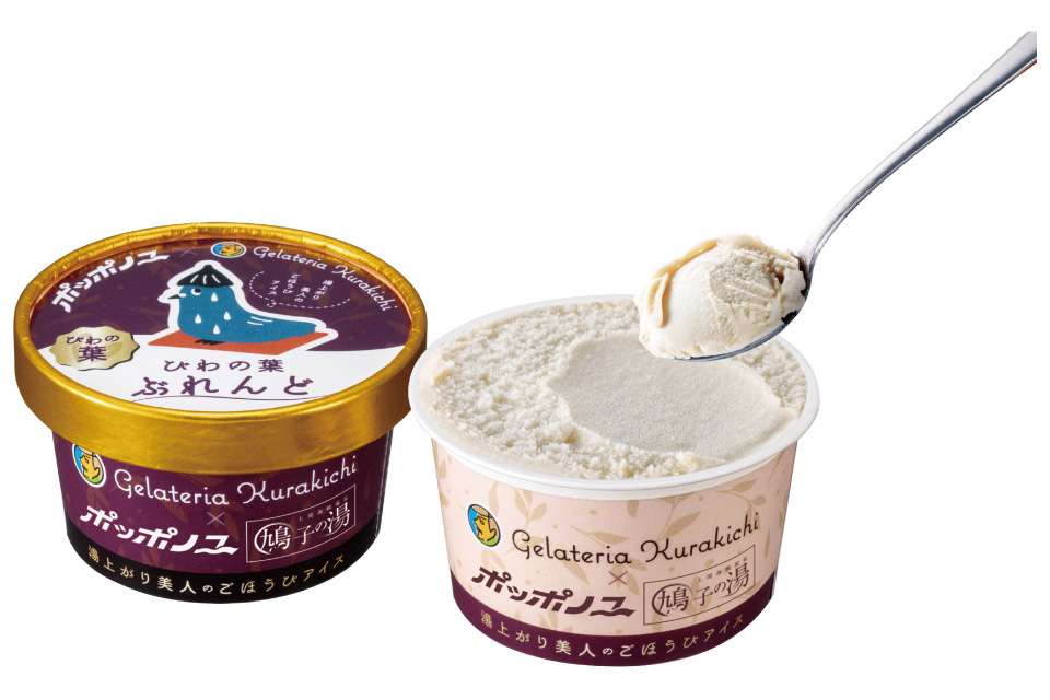 牧場直営ジェラート専門店「Gelateria Kurakichi(ジェラテリア クラキチ)」とコラボした鳩子の湯・オリジナルアイスがこの冬登場!上品なびわ茶×すっきりミルクに塩をアクセントにきかせた「びわ茶リッチバニラ」と、細かく砕いたびわの葉をミルクアイスにたっぷり混ぜ込んだ濃厚な味わいの「びわの葉ぶれんど」の2種があり。どちらも、湯上がりの身体にすっと染み渡る、こだわりの一品です。