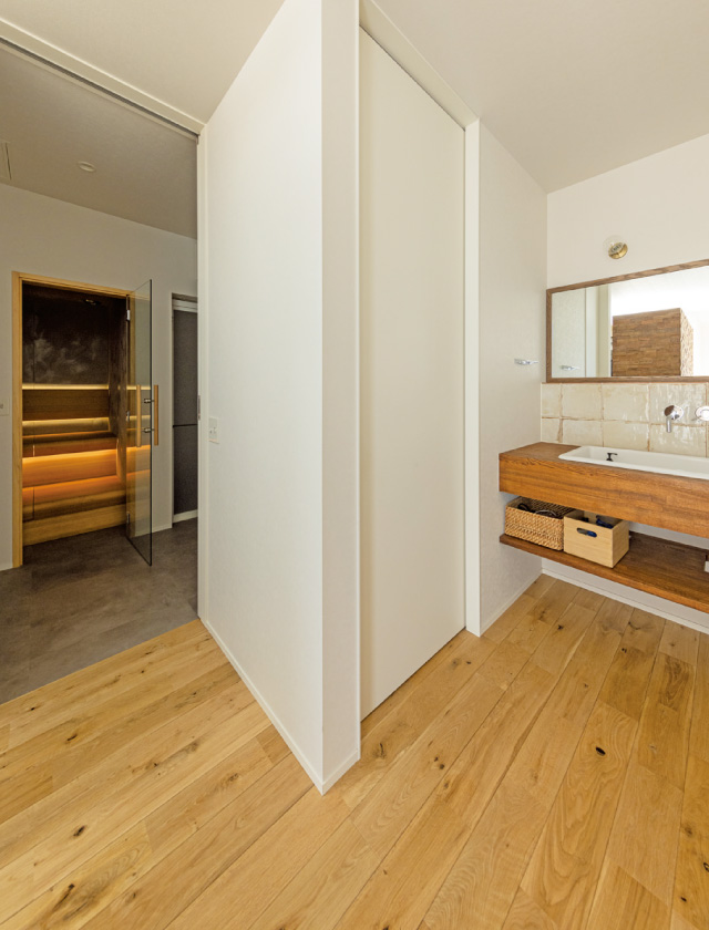 「サウナストーンに掛ける水に香りをつけたり、外気浴で好きな音楽を掛けたり…サウナを自分好みにアレンジして楽しめるところが、自宅サウナの醍醐味です!」と語るKさん。元々温泉やサウナが好きで、サウナのある家づくりを探す中、山口県の工務店でサウナメーカーでもあるtheHOUSEと出会い、約2年前に自宅サウナのある家を建てました。「今は週に1回程度、自宅サウナを楽しんでいます。サウナに入ると血流が良くなりますし、趣味の筋トレにもプラスの効果があって、もう手放せません」とにっこり。設置前は気になっていた電気代も、想定よりも掛からなかったとか。今、住まいに寄り添うサウナが広がっています。新築では快適な動線の自宅サウナを設計でき、リフォームやお庭で新しいサウナライフをはじめる人も。サウナがある日常は、思っているよりもすぐそばに。theHOUSEで探してみませんか。