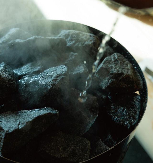 発汗作用の高まるロウリュ。自宅だと自分好みのタイミングで行うことができるのも魅力。