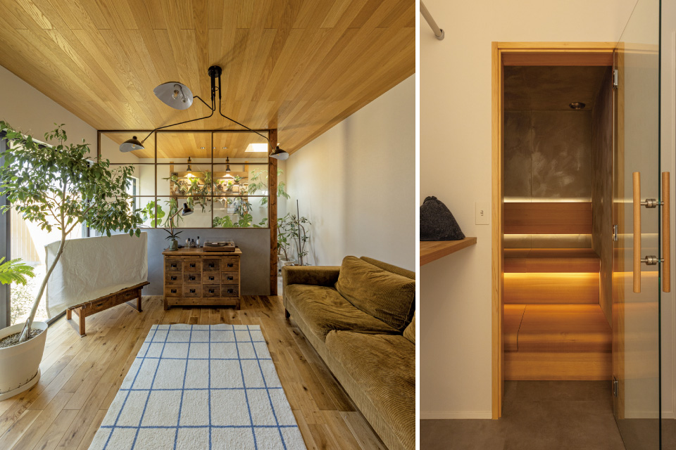 (写真右)Kさん宅のサウナ空間は約1.5畳。2人の子どもたちも、時々楽しんでいるとか。