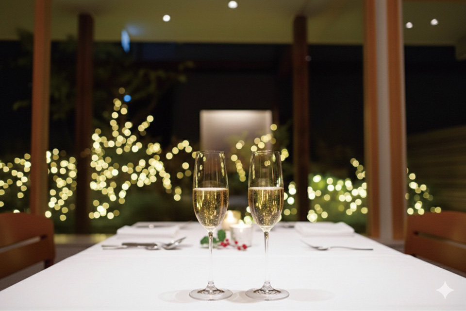 隠れ家のような雰囲気が心地良い、湯田温泉街近くのフレンチレストラン。クリスマスは、シェフの卓越した技と旬食材の魅力がより一層光る特別なコースがいただけます。ワインペアリングもあり。キャンセル規定など詳細はHPを要確認