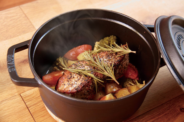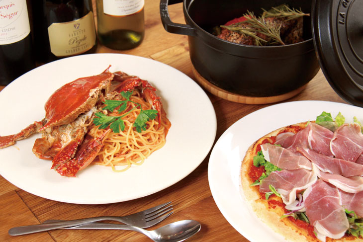 アクアパッツァに、ストウブ鍋のオーブン焼き、自家製ピッツァ…手間暇かけた料理を、オープンキッチンからすぐテーブルに届けます。