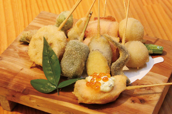 繊細さと大胆さで魅せる串揚げ、旨い魚と創作料理を