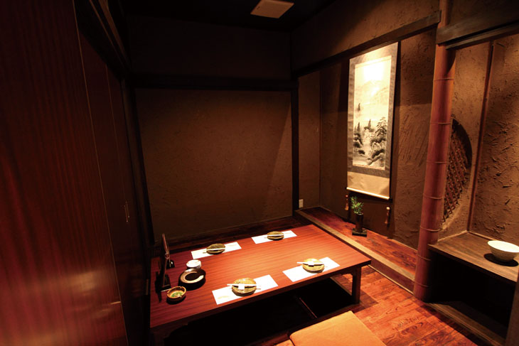 落ち着いた和家屋に、優しい灯りがともる完全個室のダイニング。