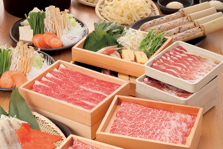 しゃぶしゃぶと特選鍋の2種が1度に愉しめ、しゃぶしゃぶのだしも5種からチョイスOK!宴会コースは¥4,000(税別)〜3コースあり、お肉の好みで選べます。