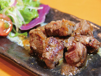 牛ヒレ肉のステーキ¥1,200。あっさりとしていて柔らかな絶品。年配の方にも好評です。