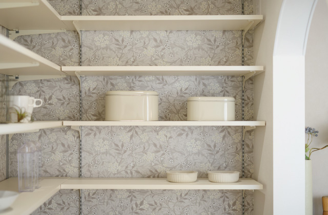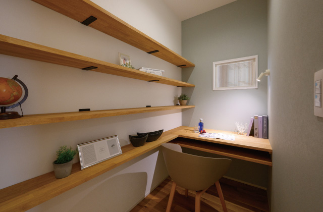 リビング奥のワークスペースは、奥様専用の特別な空間に。