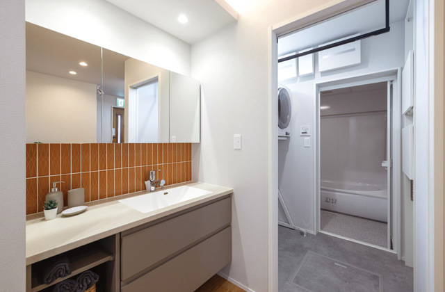 家事が楽になるように水周りをまとめたプランニング。また脱衣所と洗面所を分けることで快適で機能的な空間に。