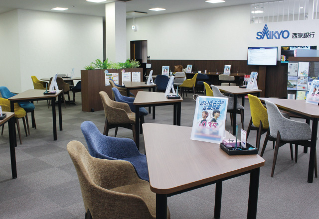 西京銀行は全店舗、カフェのような落ち着く空間。ゆったりコーヒー等を飲みながらお話できます。