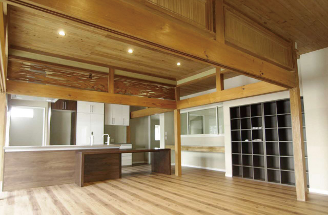 天井を取り払い、元の梁を生かしながら開放感のあるリビングに!