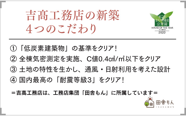 高いデザイン性と“ゼロエネ住宅” としても人気の、吉髙工務店の新築。「断熱+省エネ+創エネ」を組み合わせ、年間の一次エネルギー消費量の収支を正味ゼロに。家計に優しく心地よい暮らしが叶います。また、底冷えや冷暖房の効きなどにお困りのお家は、「断熱リフォーム」がお勧めです。屋根や壁、床、開口部の全方位で家の断熱性を高めて家をまるごと快適に!まずは一度ご相談くださいね。