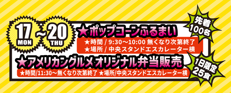 ※20歳以上の方の中央スタンドへのご入場は100円の入場料が必要です