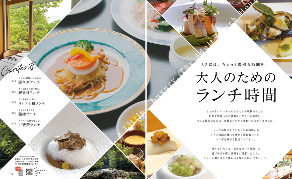 シェフが腕によりをかけた逸品を堪能できる「ご褒美ランチ」から、 日々の喧騒を離れてゆったりと過ごせる「隠れ家ランチ」、 そして、カラダを労わる「腸活ランチ」まで。トライアングル11月号では、様々なかたちで“上質なランチ時間”を過ごせる、選りすぐりのお店情報をたっぷりご紹介しています。 さぁ、心満たされる、最高の味わいを探しに出かけましょう!