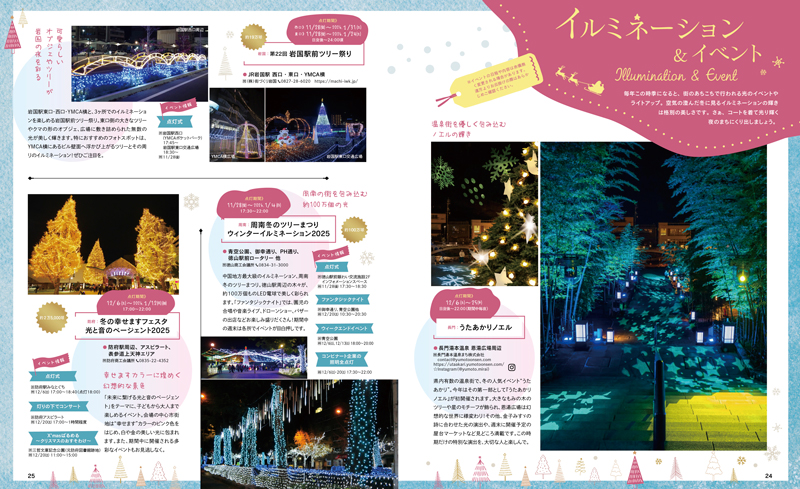 イベント&イルミネーションガイド: 冬の夜を彩る町のイルミネーション情報や、クリスマス、年末年始のイベント情報をぎゅっと凝縮してお届けします!