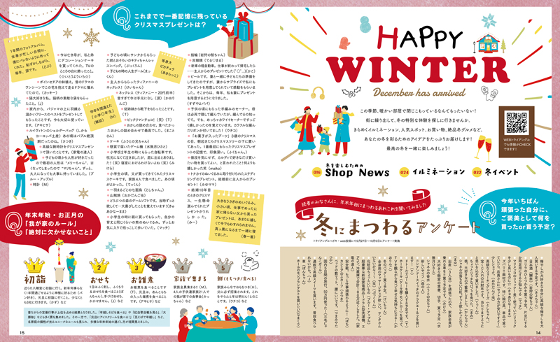 さらに、冬の楽しみを深めるHAPPY WINTER情報や、イルミネーション、年末年始のお出かけ情報も満載。この冬を豊かに彩る一冊をぜひお見逃しなく!