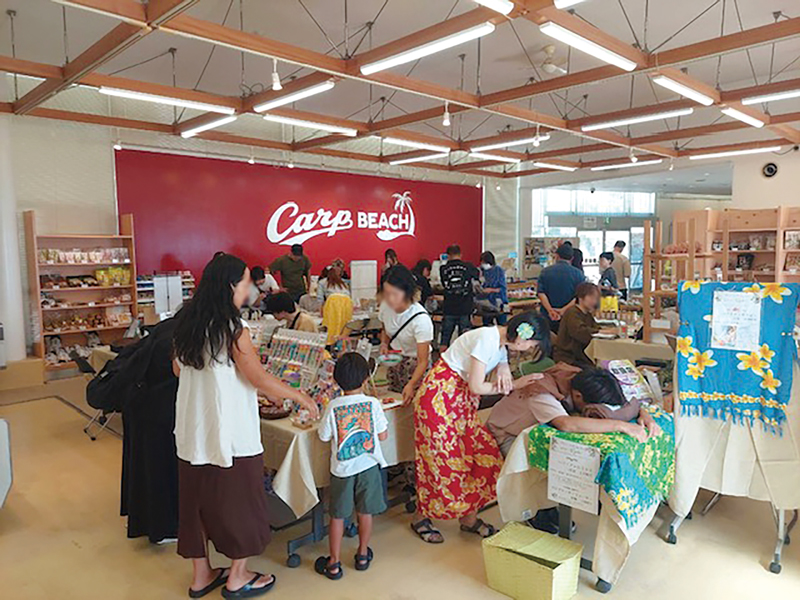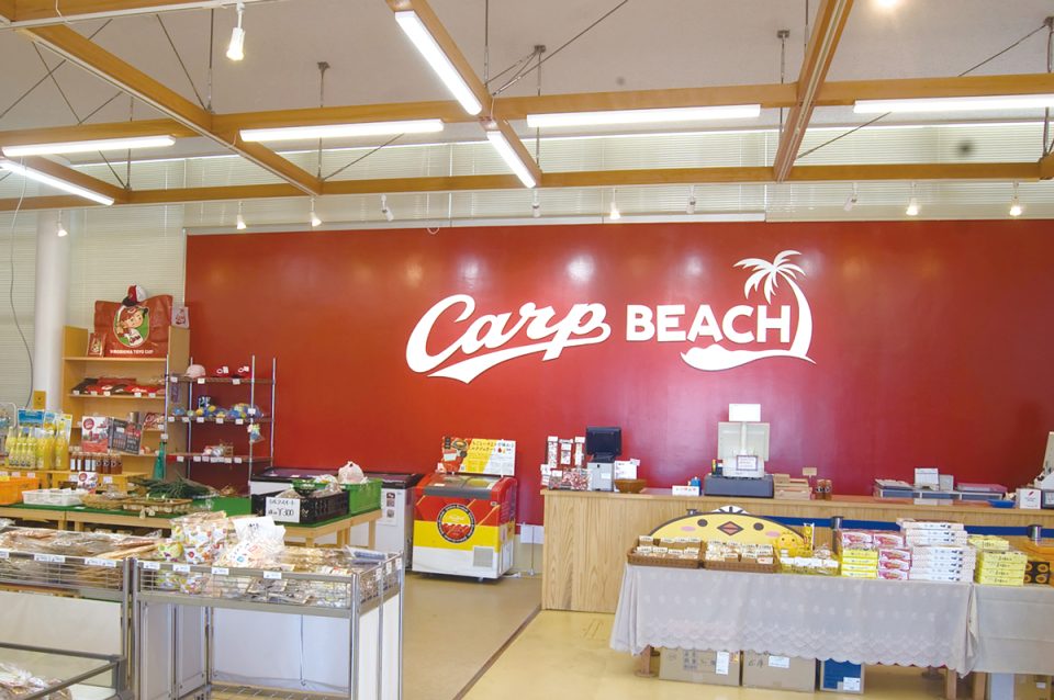 地域の海産物や農作物、加工品が並ぶ物販コーナーに加え、カープ応援グッズも揃う、より楽しいスポットに生まれ変わりました。