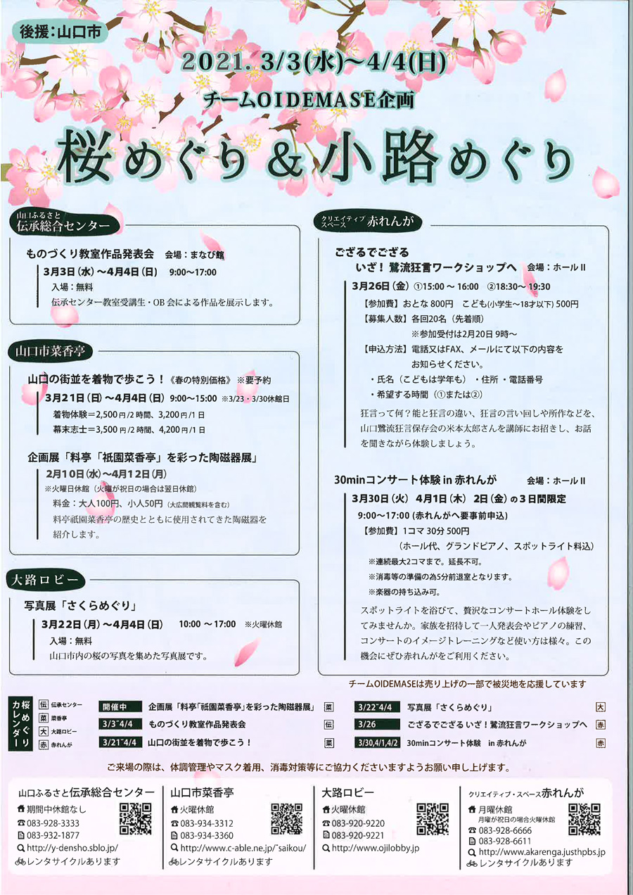 【山口イベント】桜花を愛でながら、全4施設でのイベントを巡って。/桜めぐり&小路めぐり