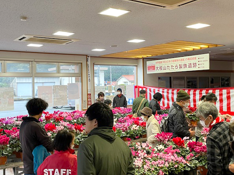 萩市福栄地域は県内有数のシクラメンの産地。冬を彩るシクラメンの出荷がピークを迎える12月初めに開催されます。地元農家が厳選した約2,000~3,000鉢のシクラメンが並ぶ様子は色鮮やかで、購入することも可能。他にも花苗や新鮮野菜の販売、うどんなどの軽食コーナーも登場します。