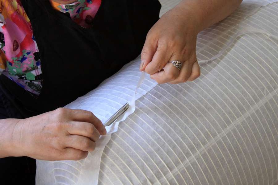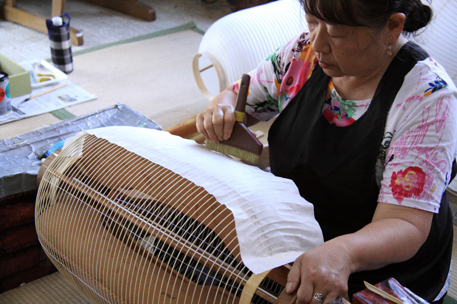大きさにもよりますが、ひとつの提灯が完成するまでに約1週間。その工程を見せていただきました。