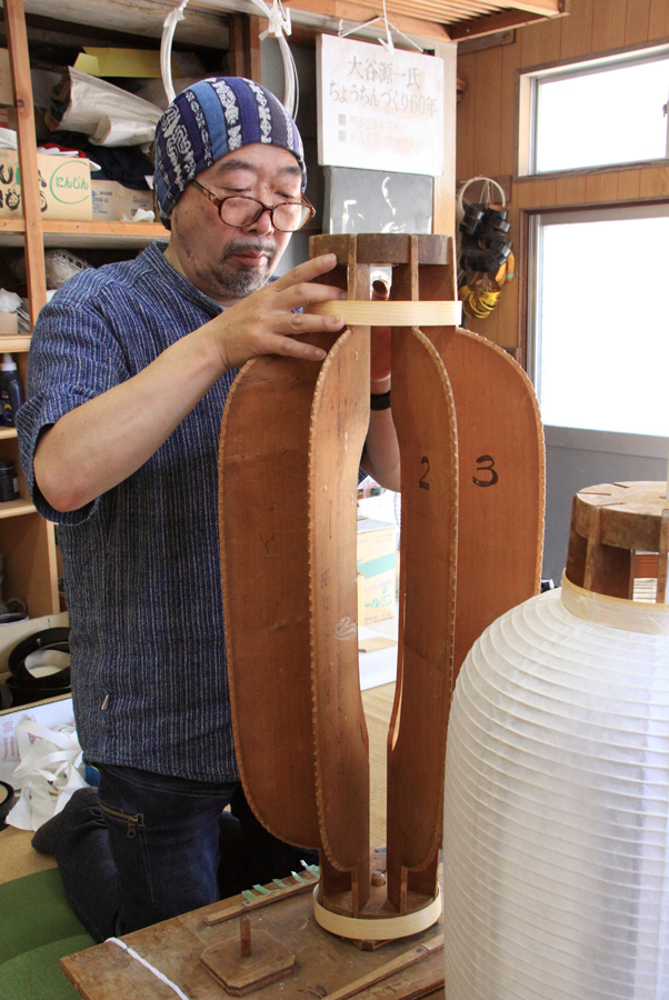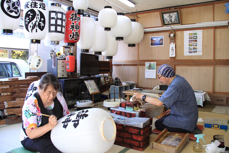 こちらは大正5年(1916年)創業、ご主人・大谷育男さんは三代目。奥様の弘美さんとともに、提灯を制作しています。
