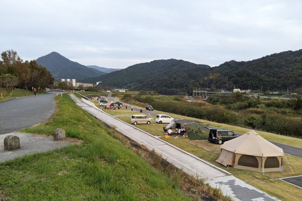 防府市「佐波川」に面したキャンプ場。