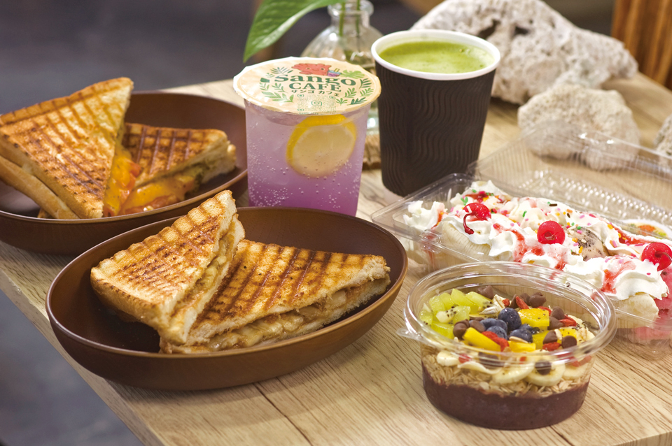 グリルチーズ¥800,サンゴスムージーボウル¥1,200、バナナスプリット¥1,000など