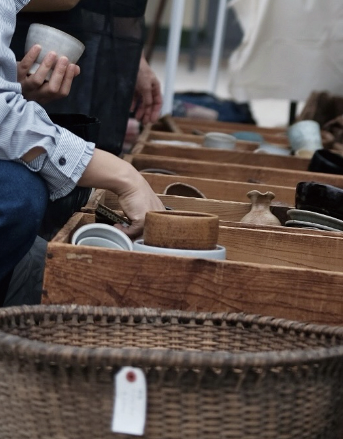 日の出と共に開催される蚤の市。会場に並ぶ約70店舗は、西は鹿児島、東は愛知から訪れた古道具・骨董の人気店ばかり。「うぶ出し」と呼ばれる、古い蔵などで買い付けられた、初めて市場に出る品も多く並びます。また、南米や中国、タイ、ベトナムなどのなかなかお目に掛かれない民芸品や、珍しい植物の出店もあり。思いがけない出会いと発見があるかも…⁉