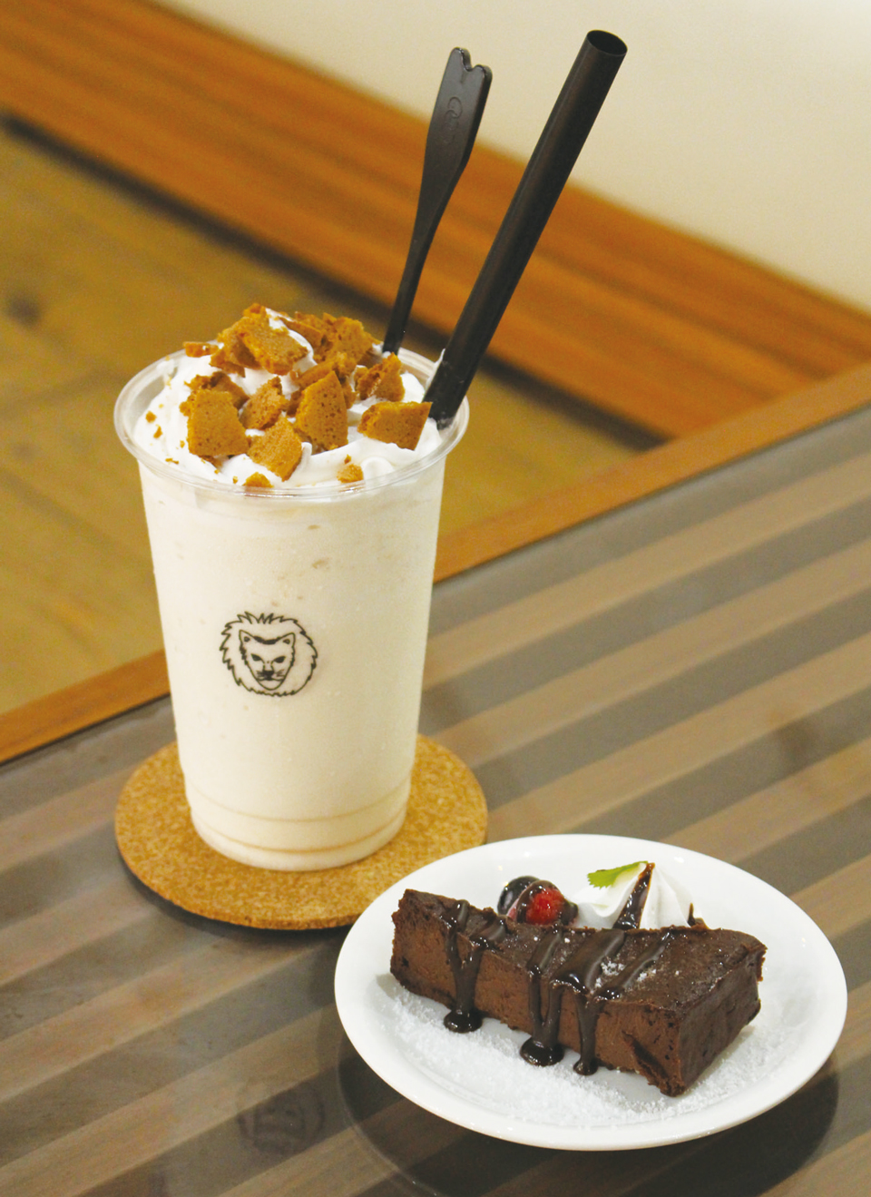鶏卵せんべいフラッペ700円、ガトーショコラ400円