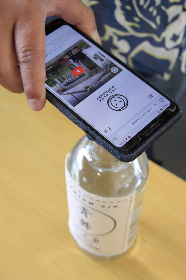 こんな物語が飲む人に伝わるようにと、コルクの栓にはNFCチップが埋め込まれているんです。栓にスマートフォンをかざすと「青舞」のwebサイトにつながります。