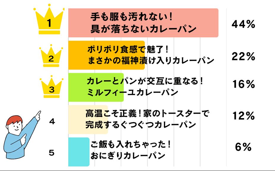 「手が汚れない」という実用性が1位に。その実践できるアイデアとして「プチカレーパン」のアイデアが多数寄せられました!これは求められてる証かも…!