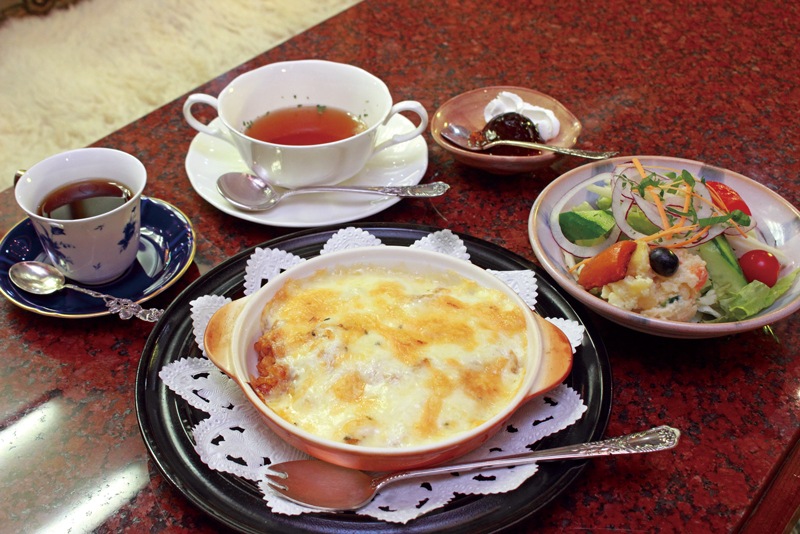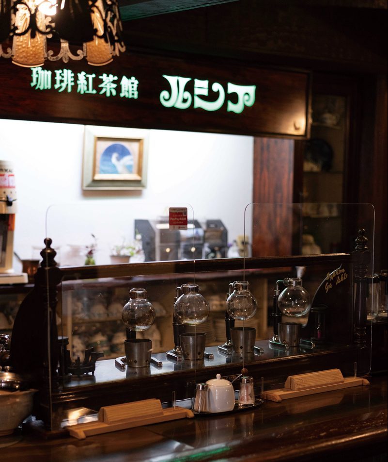 お気に入りの席に着けば、重厚な雰囲気の内装やアンティークを眺めながら、サイフォン式で淹れる珈琲や丁寧に作られた軽食メニューの数々を味わえます。