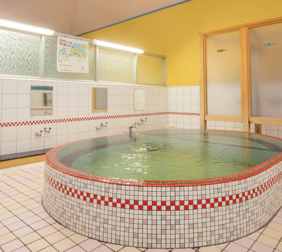 火・金曜は炭酸風呂、それ以外は水素風呂に。井戸水を沸かした湯に、ナノバブルで炭酸や水素を送り込んでいます。