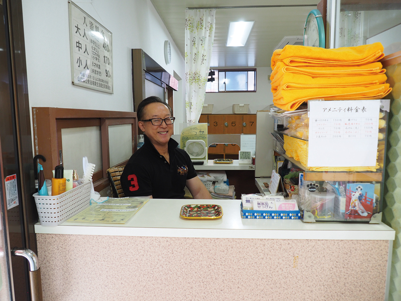 昭和28年から高原さんご家族で代々受け継ぐ、周南市で唯一の銭湯。約5年前から娘の舞さん・彩さんが4代目として番台に立ち、お客さんを温かく迎えています。