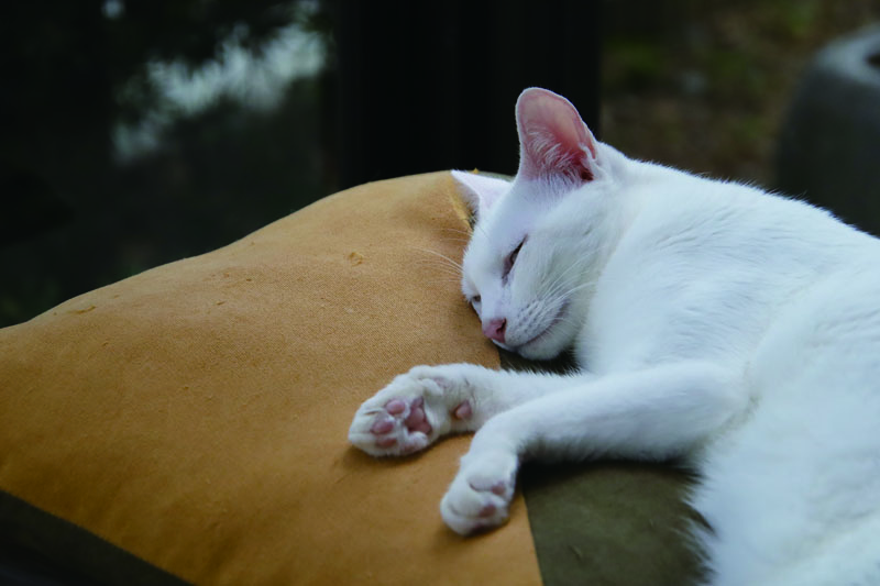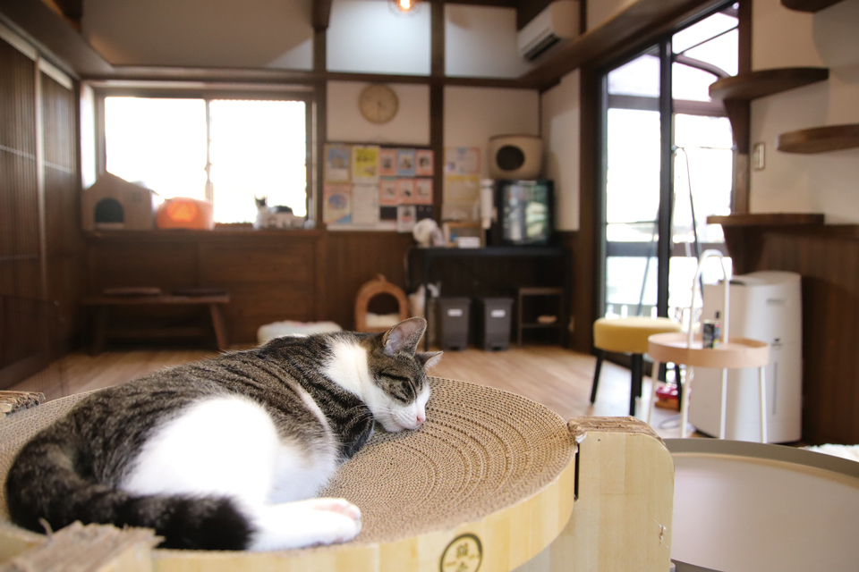 店内は、柔らかい日差しと心地良い音楽が流れる癒しの空間。現在、ボランティアの皆さんの協力で人慣れした7匹の猫たちが、気ままにのんびりと過ごしています。元気いっぱいに遊ぶ子もいれば、窓辺で日向ぼっこを楽しむ子も。愛らしい猫たちと触れ合ううちに、自然と笑顔があふれてくるはずです。キュートな瞬間を写真に収めるのもおすすめです。