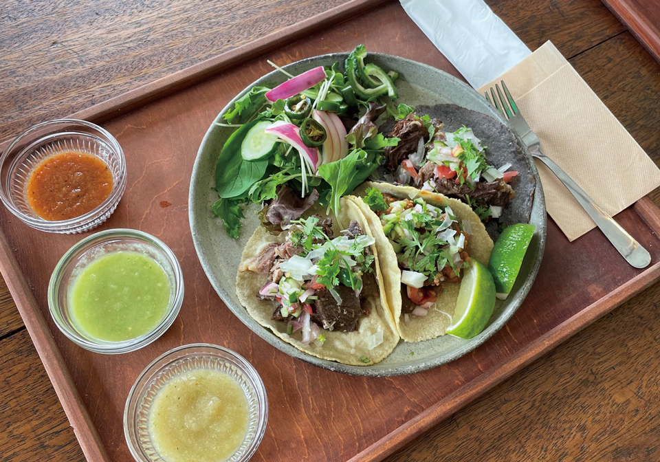 フレッシュな自家栽培唐辛子で作るサルサが決め手のタコスは、辛さの奥にある唐辛子の香りと風味を味わえる逸品。3種のタコスにサラダが付いており、ランチにもぴったりです。