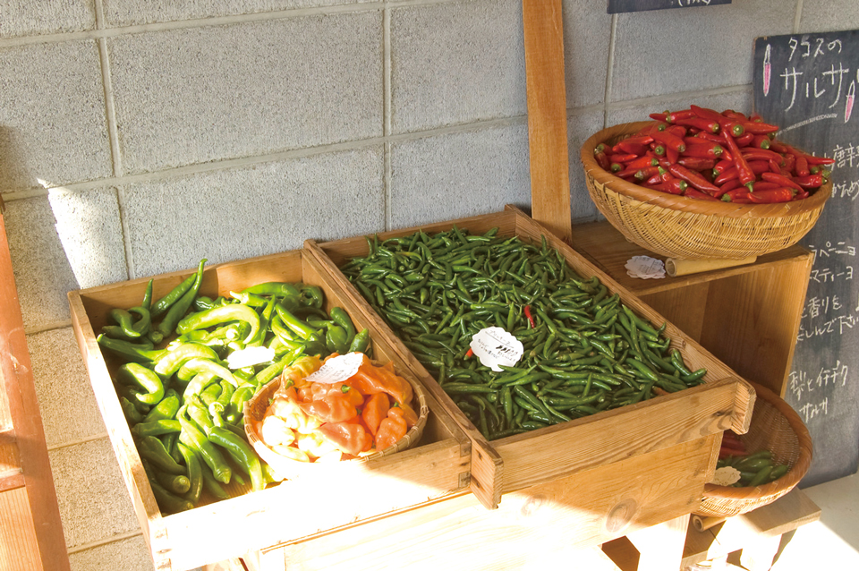 カフェの看板メニューは、唐辛子の奥深い旨味を堪能できるグリーンカレーとタコスです。