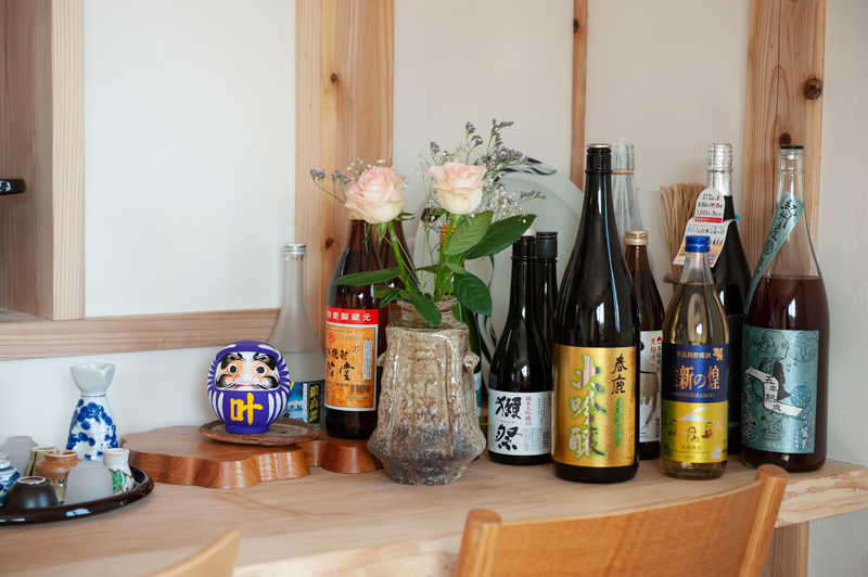 夜はお酒もおすすめ。店主セレクトの日本酒、焼酎などが揃います。