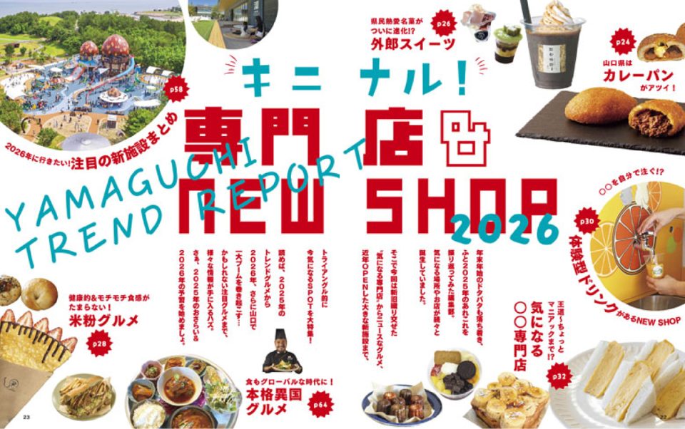 トライアングル2月号は、今まさに山口で話題のスポットを凝縮した「キニナル!専門店&NEW SHOP 2026」を大特集!
