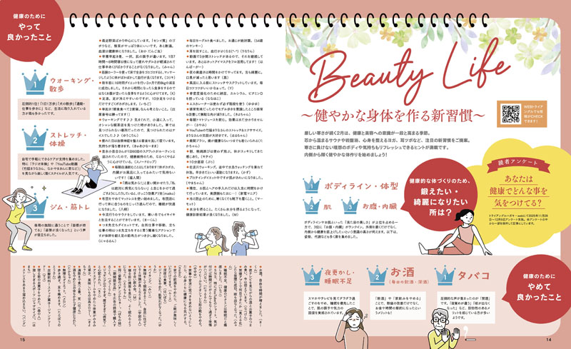「健やかな身体を作る新習慣」をテーマに、ショップ情報をはじめ、読者の皆さんの「やって良かった」習慣などのエピソードも満載。内側から輝く自分を目指しませんか?