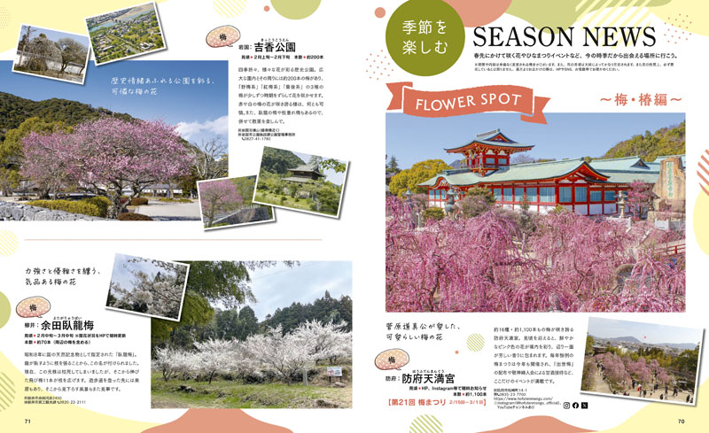 春の香りに誘われて。県内の梅の名所やひな祭りイベントなど、今の時季だからこそ出会える風景をお届けします。