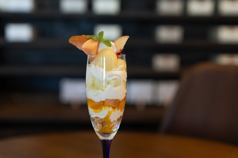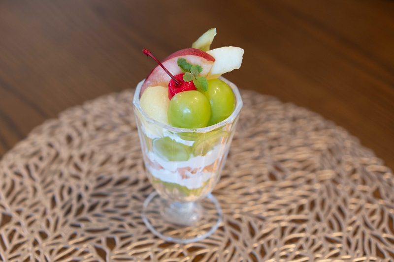 ブランデーケーキパフェ¥880 ※フルーツは季節によって変わります