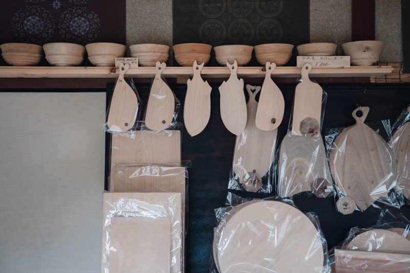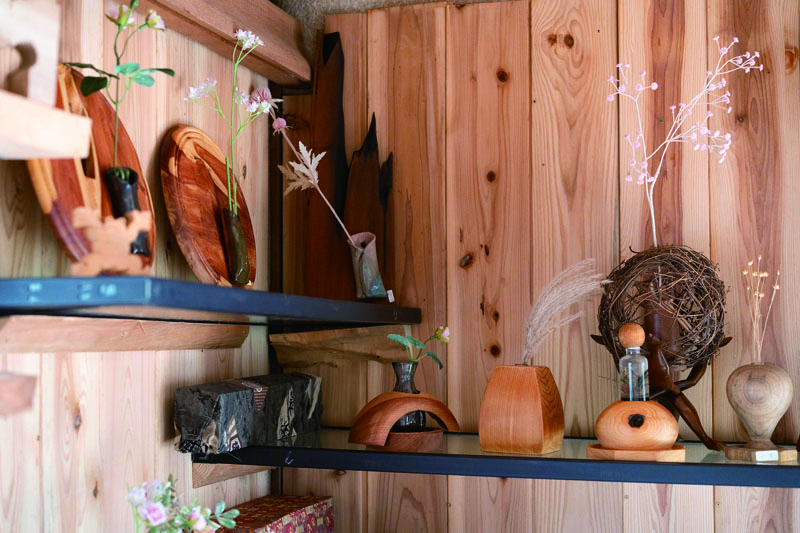 店内には、店主の町野さんが手がけた木工作品が種類豊富に並びます。