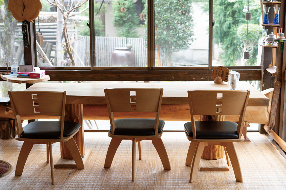 木や人とのつながりを大切にする店主の町野さんが営むこのお店では、木の温もりあふれる作品を楽しみながら、ゆったりとドリンクを味わうことができます。