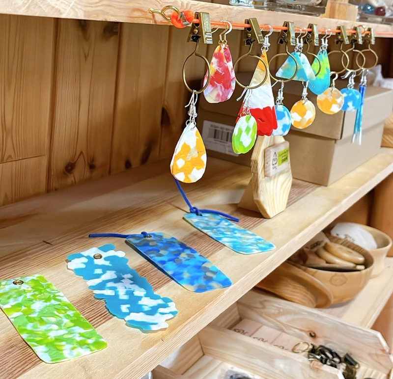 さらに「木まぐれ」には、町野さんと親交のある様々な作家さんの作品も集まっています。アクセサリーのほか、着物やペットボトルキャップを再利用したアップサイクル作品の展示販売もあり、様々な作り手の「想い」と「木の温もり」を感じられる空間となっています。