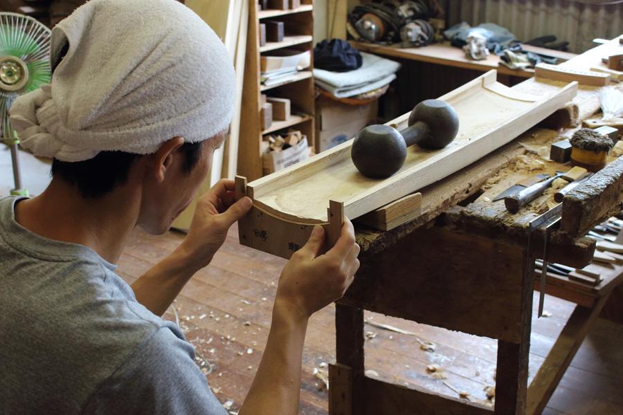 特に音を決める上で重要なのが、甲作りの中の、裏側を削る中削りという作業です。