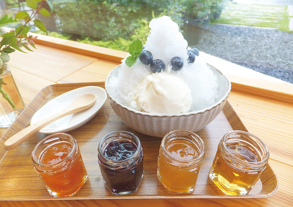 四季に応じた旬の果実ジャムで有名な手づくりジャム専門店。実は一角にブルーベリー農園があり、6品種のブルーベリーを好みに合わせて摘み取れます。無農薬栽培なので、摘んだその場で食べてみて!隣接のカフェではブルーベリースイーツ&かき氷フェアも開催中。希望者はジャム工房の見学もできます。
