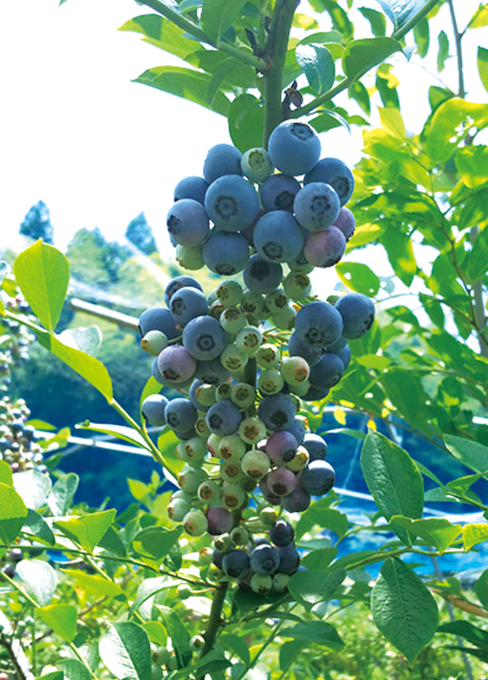 ラビットアイ系を中心に、生でもジャムでもおいしいティフブルーに甘味の強いホームベル、大粒のウッダートなどを栽培する農園です。化学肥料・農薬を使用せず、有機質肥料を使用しているので、甘くて深い味わいが特徴です。安心して、そのままパクっと食べてみて!