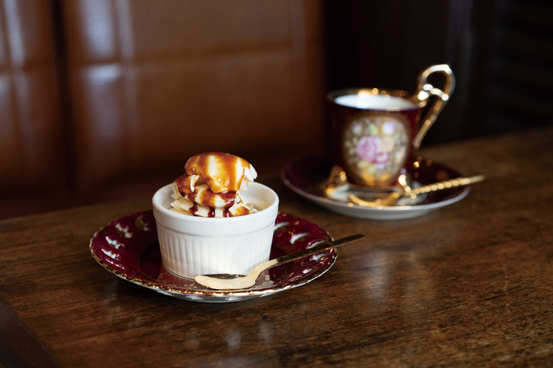 しっかりとした昔ながらの味わいに、上に乗ったバニラアイスとカラメルソース、そしてコーンフレークが食感のアクセント!誰もがハマる至福の一品です。