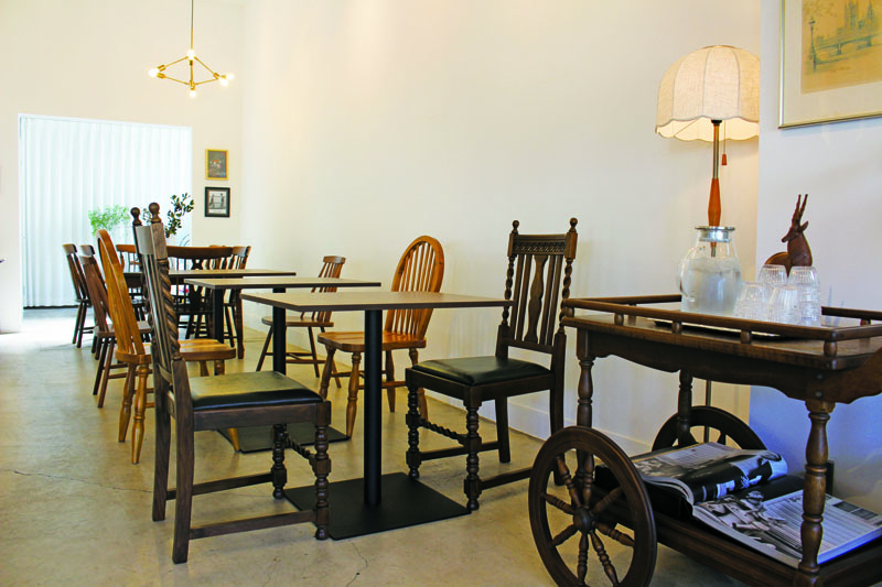 お店の雰囲気も魅力的です。モダンでモードな背景に、アンティークな温もりも感じる店内は、日々の忙しい時間の中にホッと一息つけるような心地よさ。素敵な空間と、心と身体にやさしい焼き菓子が相まって、至福のひとときを過ごすことができます。
